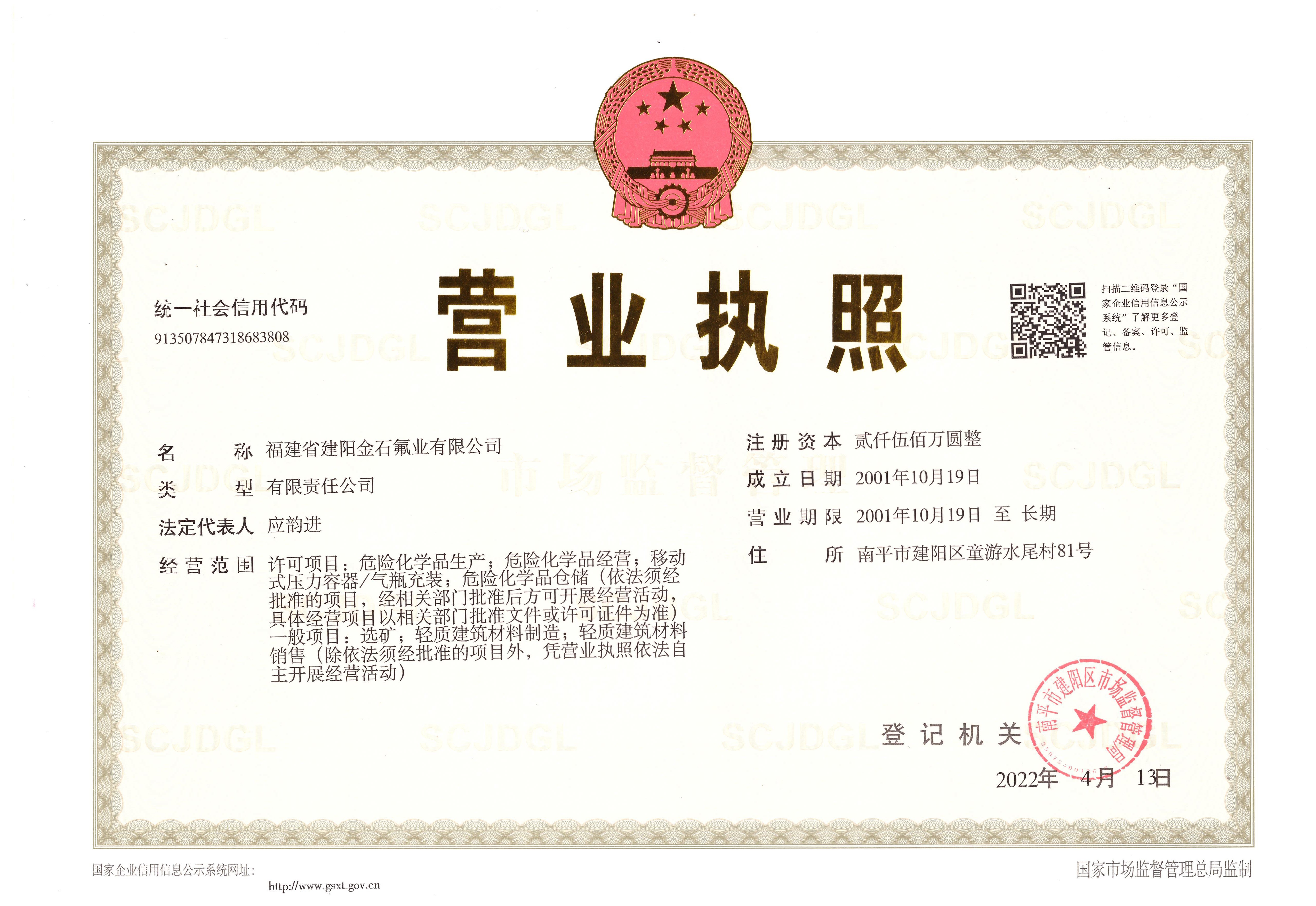 您好!歡迎訪問(wèn)福建省建陽(yáng)金石氟業(yè)有限公司官方網(wǎng)站!